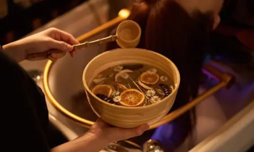 Gội thảo mộc dịu nhẹ; massage da đầu – chân tóc; ủ khăn ấm.